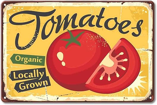 Amazon 黄色の金属の看板のデザインに地元で栽培された赤いトマトレトロなファッションシックな面白い金属の錫の看板の壁の装飾8x12インチ 店舗看板 文房具 オフィス用品